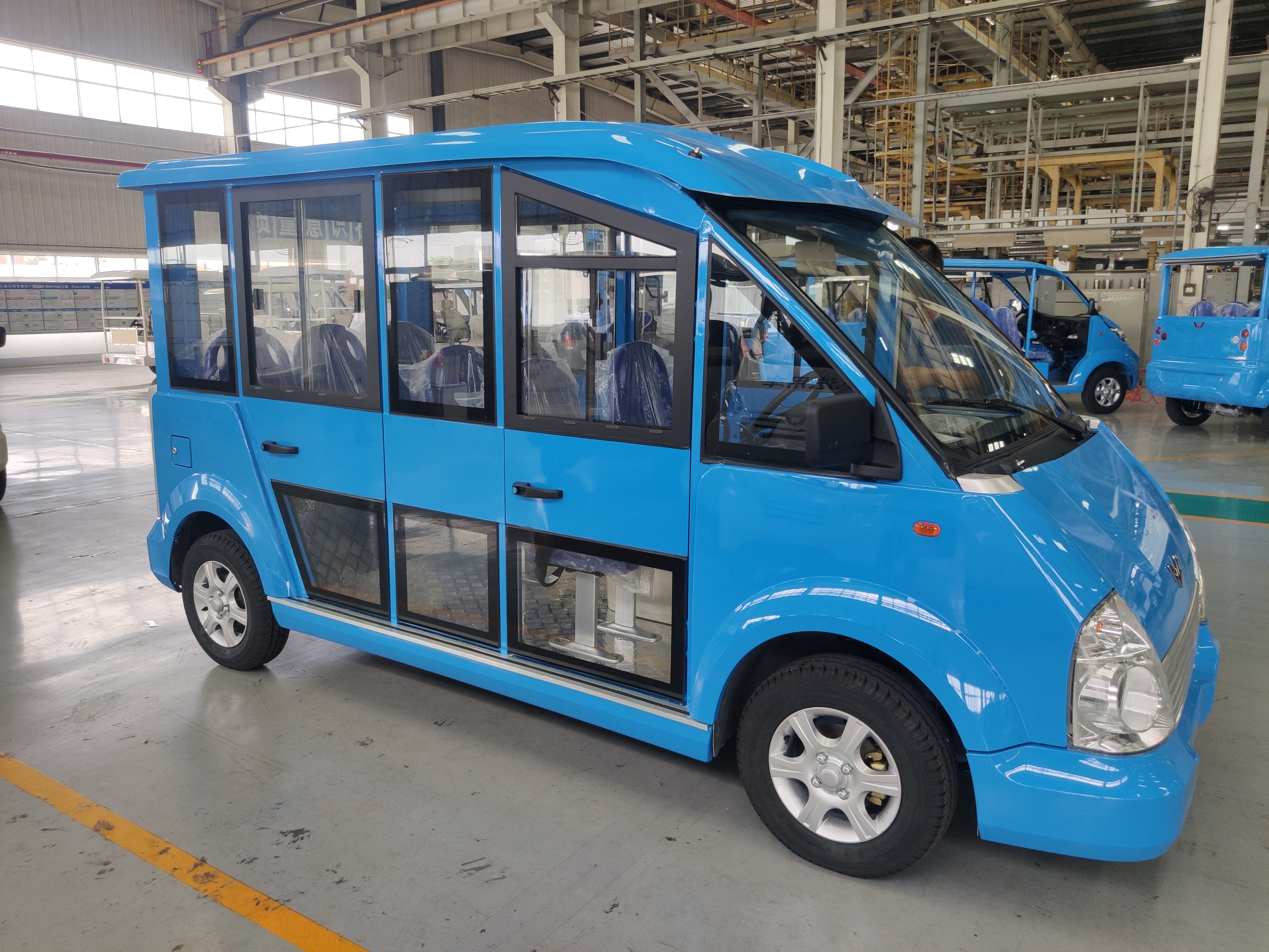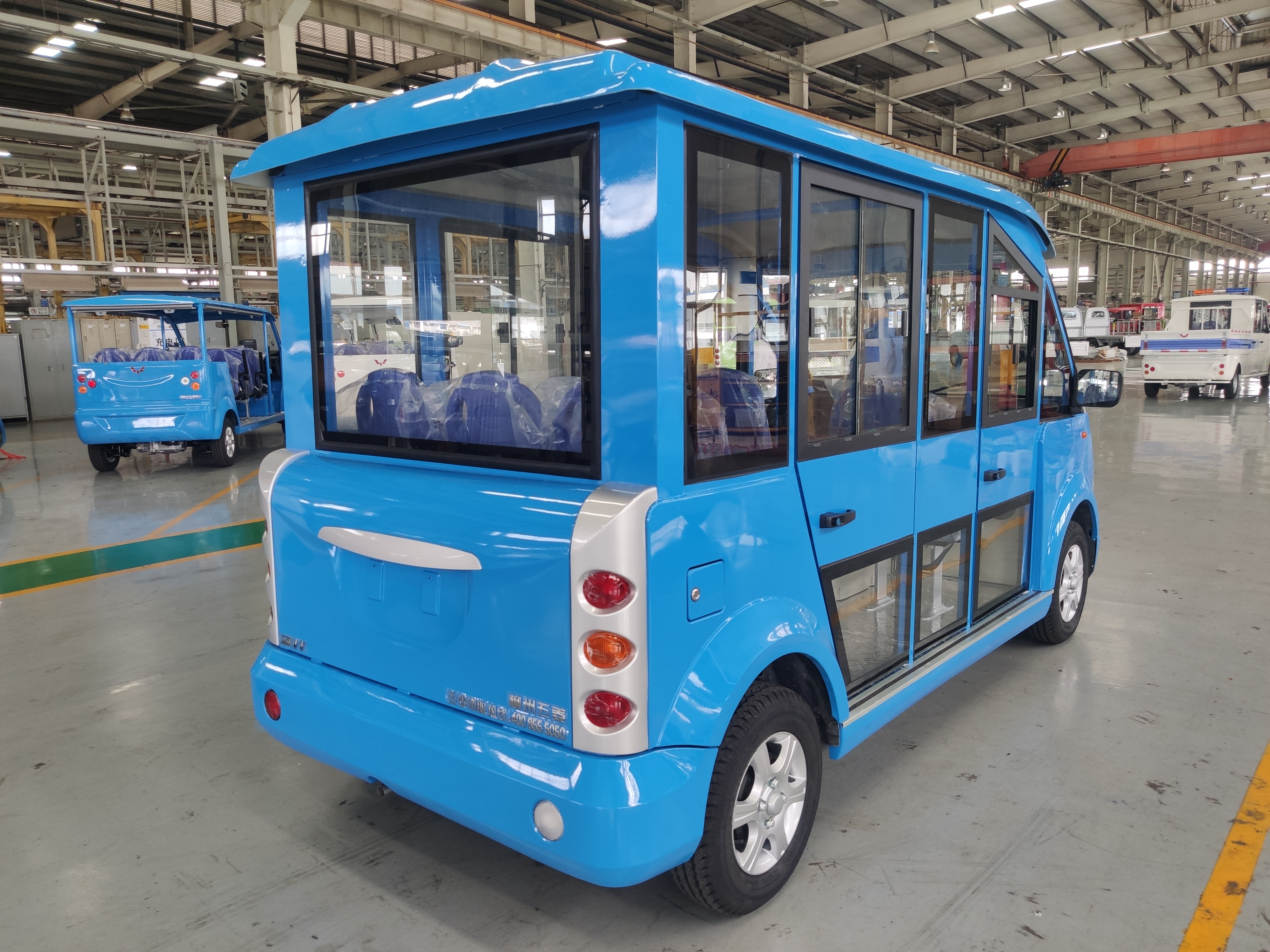 五菱17座电动观光车属于L系列宽体车型,具有动力强劲、安全可靠、乘坐舒适等特点